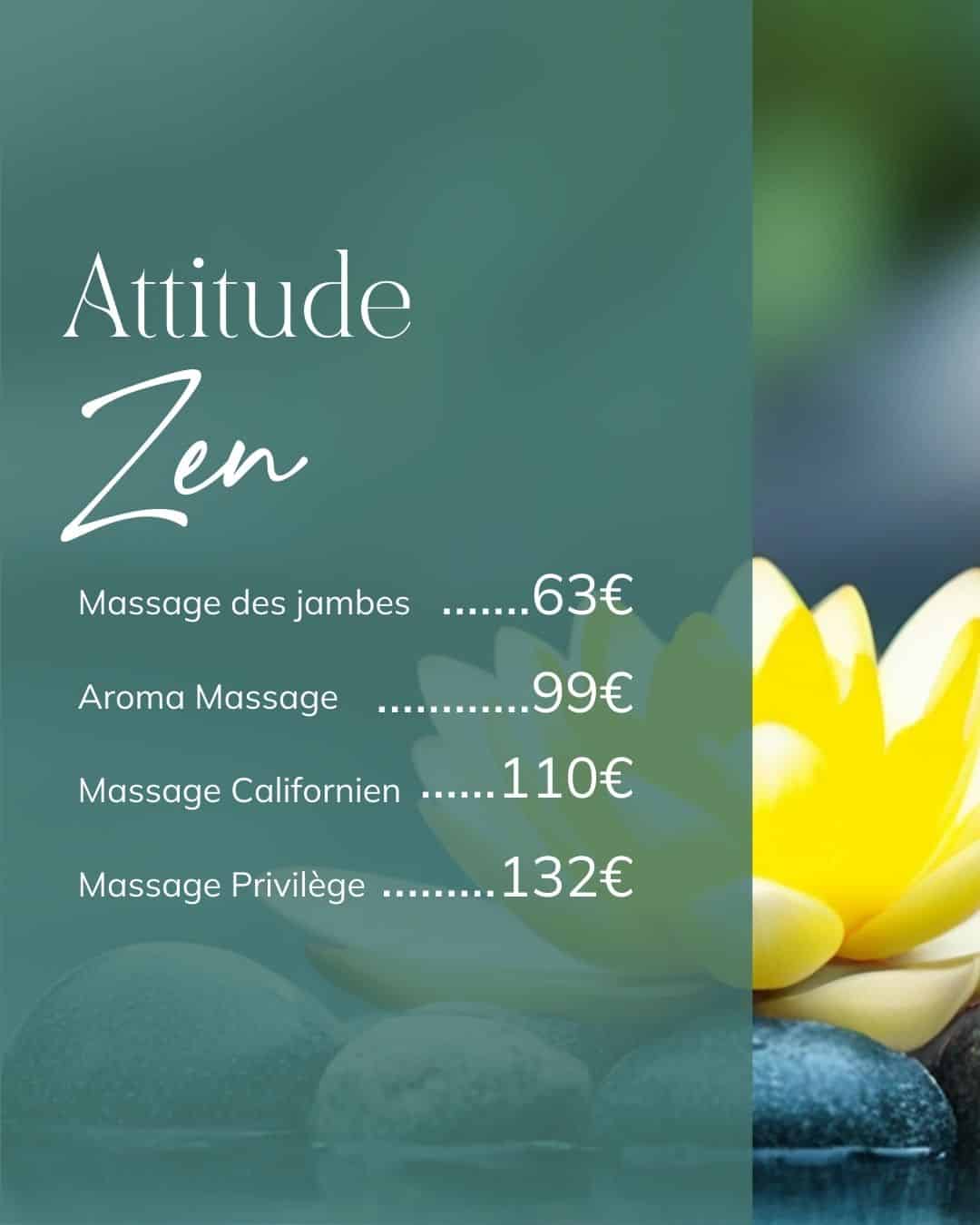 Offrez à votre corps une expérience unique avec nos massages exclusifs : de la légèreté retrouvée avec le massage des jambes à la relaxation totale du Massage Privilège, chaque soin est une invitation à l’évasion, au bien-être et à la détente profonde…